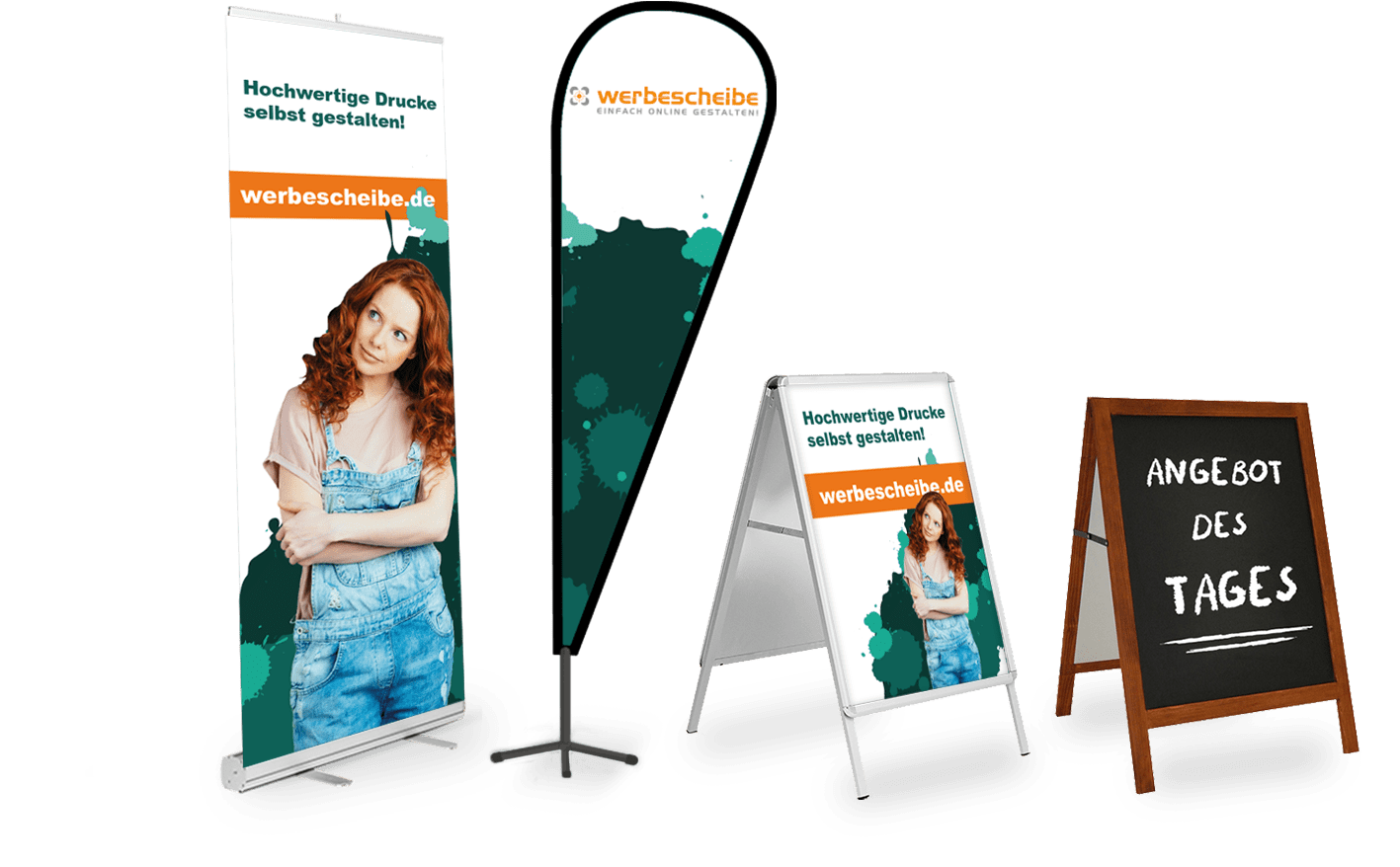 Werbesysteme wie Kundenstopper, Beachflags oder Roll up Banner sind der Blickfang für Ihren Messeauftritt oder in Ihrem Verkaufsraum. Unsere hochwertigen Kundenstopper bieten wir in verschiedenen Formaten für den Innen- und Außeneinsatz an. Das passende Poster für Ihren Kundenstopper wird mitgeliefert. Aufstell-Banner in Form von Rollup- oder L-Bannern liefern wir inklusive Druck auf hochwertigem Bannermaterial. Das Bannermaterial hat eine Anti-Curl-Eigenschaft, d.h. die Außenseiten des Banners wölben sich nicht nach innen. Die Blockout-Beschichtung des Banners verhindert eine Lichtdurchdringung bei Hinterleuchtung des Banners. Ihr Werbesysteme jetzt einfach selbst gestalten mit unserem Editor oder fertige Druckdaten direkt hochladen. Wir liefern Werbetechnik online oder persönlich in Dortmund und Umgebung aus.